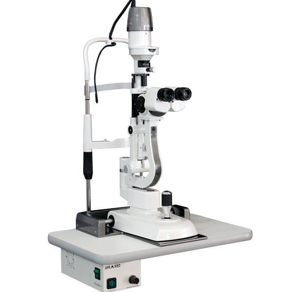 Trata-se de um microscópio de grande aumento que possibilita avaliar os olhos em detalhes.
